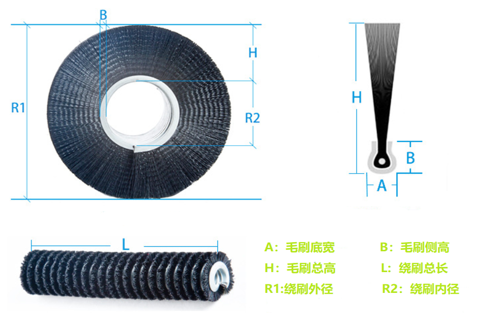 很高且不易掉絲的彈簧毛刷輥(又叫纏繞式毛刷輥)。