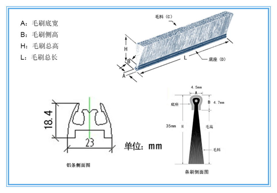 我司電梯毛刷根據(jù)國家標(biāo)準(zhǔn)要求,分為單排和雙排兩種規(guī)格,鋁合金底座經(jīng)過氧化處理,表面光滑,耐磨損。毛刷材質(zhì)柔軟,耐磨性高。產(chǎn)品規(guī)格均適用于日立、迅達(dá)、蒂森克虜伯、西子奧的斯、三菱、通力等電梯品牌。